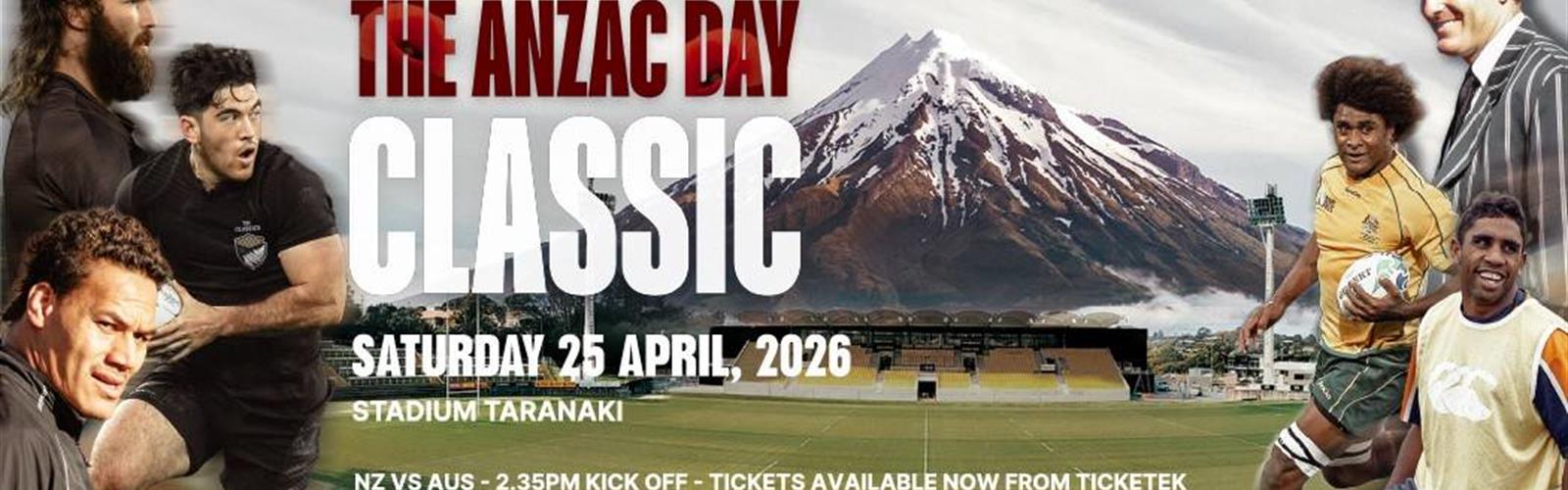 Taranaki Like No Other and New Plymouth Event Venues are proud to present The ANZAC Day Classic — a blockbuster day of rugby as The Classics of New Zealand take on Classic Australia at Stadium Taranaki on Saturday, 25 April 2026.